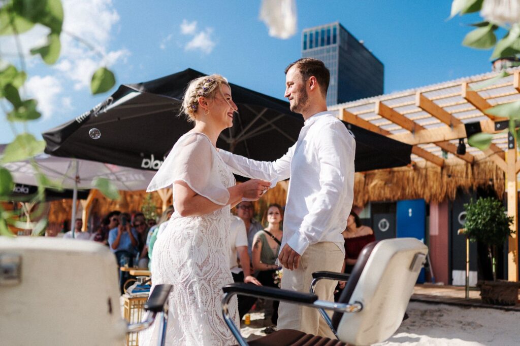 - StrandPauli bietet ein sehr lockeres, maritimes Setting direkt an der Elbe. Freie Trauungen finden hier meist im Sand- oder Terrassenbereich statt und sind stark wetterabhängig. Der Ort eignet sich für Paare, die eine ungezwungene Atmosphäre suchen und bewusst auf klassische Abläufe verzichten.