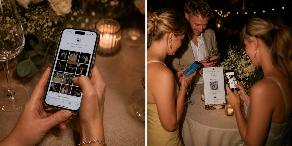 Dazu kommt, dass der Upload nicht zwingend nur am Hochzeitstag passieren muss. Viele Gäste laden ihre Bilder auch am nächsten Tag oder in den Tagen danach hoch. Das nimmt Druck raus und erhöht die Wahrscheinlichkeit, dass wirklich alle Fotos zusammenkommen.